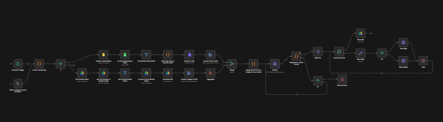 Manual reporting often consumes excessive time and is prone to human error when consolidating monthly performance data. I developed the Activity Summary Deck Generator using n8n and AI to automate the creation of polished, data-driven reports. This workflow transforms raw activity logs into professional presentation decks, allowing teams to focus on strategy rather than repetitive manual documentation.